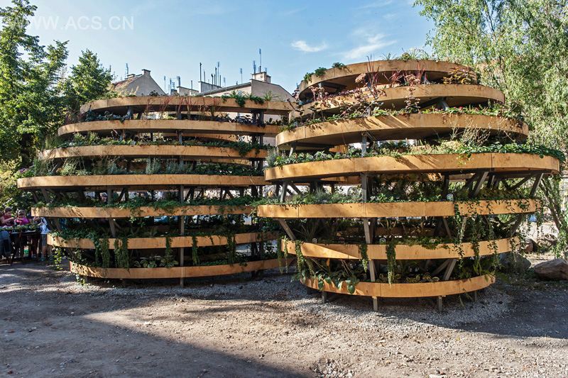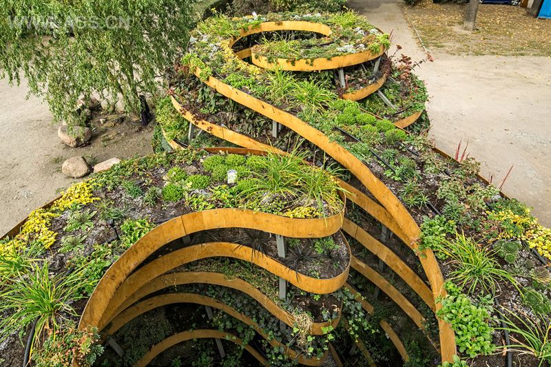 “The Infinite Green” is an example of a ‘green sculpture’ which is a combination of steel and wood construction, soil and vegetating plants.
