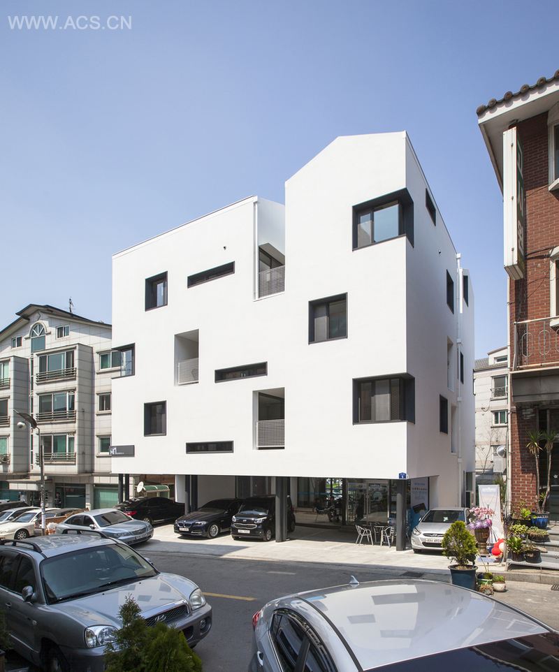 该项目位于韩国福井洞。由于这片区域附近有几所大学,近几年来学生宿舍和工作室类型的建筑越来越受欢迎;同时,由于临近首尔,白领们也青睐于住在这里,因此对于小型住宅单元的需求也日益增加。这些因素共同决定了这块区域将成为多庭院住宅、工作室和学生宿舍的集中地。