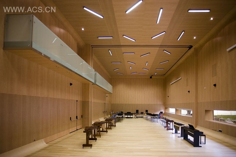 该项目经历了多次修订和完善其内容和课程体系,经过数年,完成了最终的设计。由此产生的建筑有一个有趣的双重关系,其中一楼是用于音乐和舞蹈,二楼(和节目区)是一个自述力强的连接着宽阔的露天(覆盖式)大楼梯厅走廊,同时又作为会场,表演和展览空间。