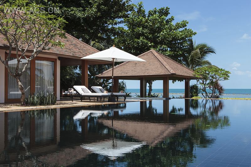 傍晚,庄园中充满异国情调的植物与海滨景色交织在一起,透露出古朴典雅的气息;兰花、棕榈树、茉莉以及素罄花共同打造出如万花筒般绚丽的夕阳美景。