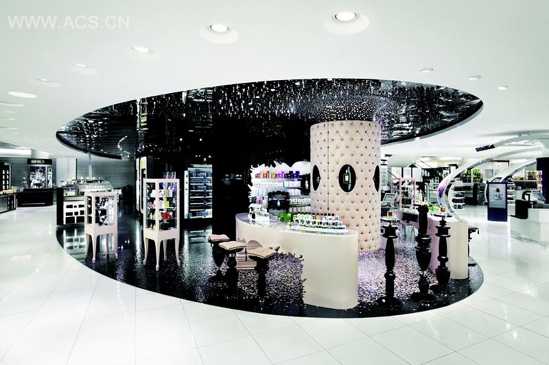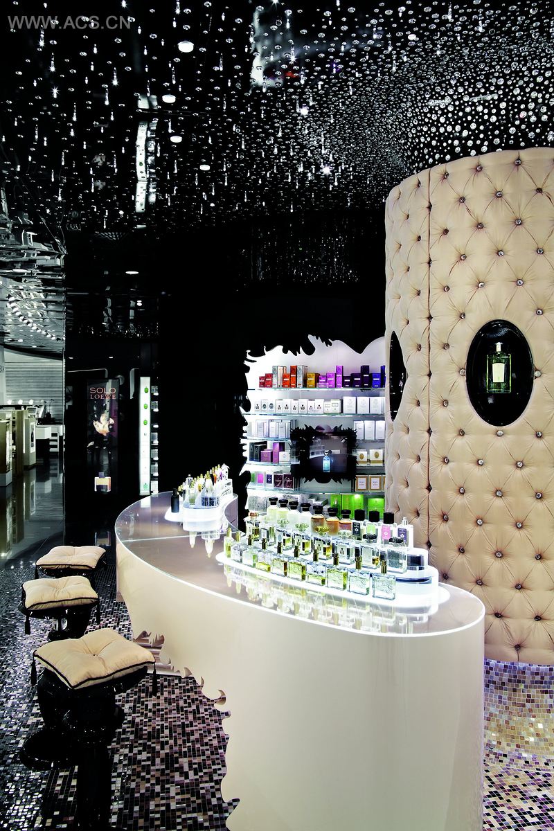 2007年,欧洲顶级高级百货店卡迪威进一步扩大奢侈品销售,在新开的“香水吧”内高价销售国际奢侈品牌香水。本案的设计理念是对“巴洛克”主题进行现代解读,在只有45平方米的空间内反映了奢侈品需求。