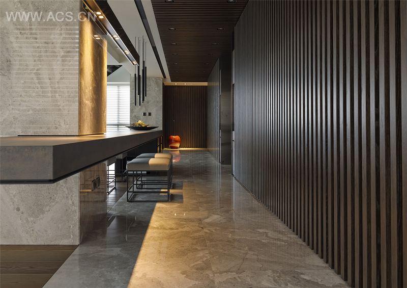 利用材料质的延续暗示,赋予机能并串联区分空间,延伸视线及创造出光影及空气的流动。