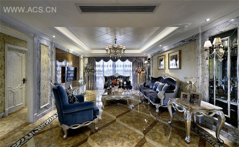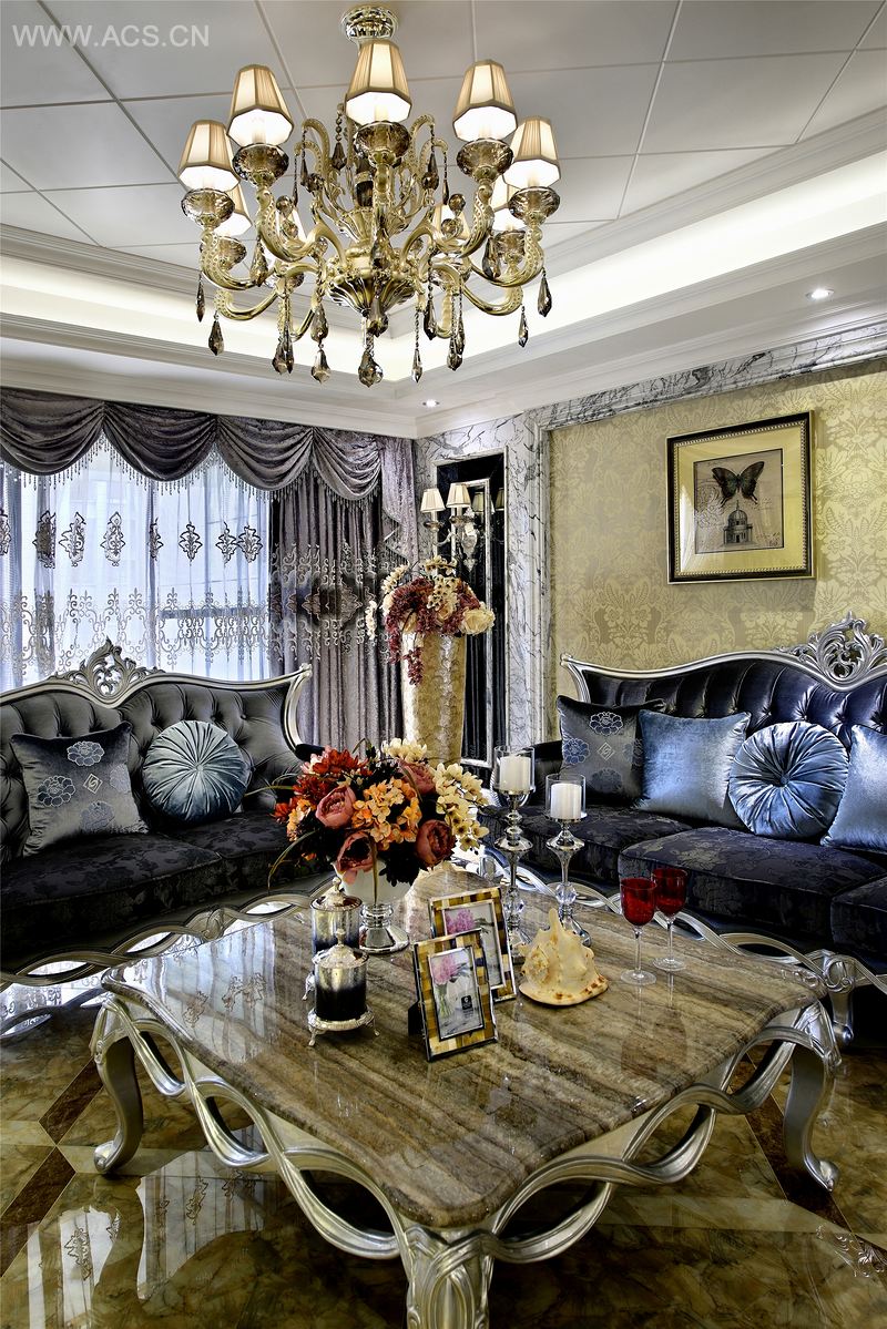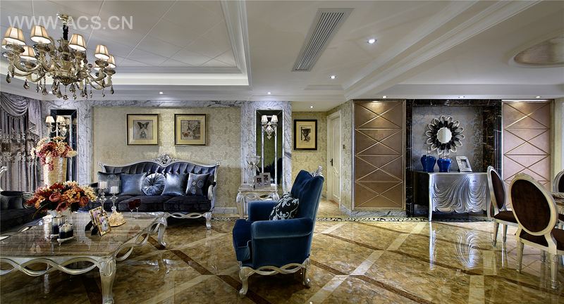奔放热情的意大利风情在此空间得到完美的体现,色彩鲜艳的大理石地板以及活泼的拼图形式,让整个空间充满浓浓的异域风情。大气而奢华的家具,冷艳的金属光泽与华丽的羽绒触感,让空间处处透着一股漫不经心的贵族式的慵懒感觉。