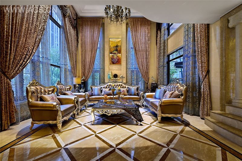 本案采用现代奢华新古典风格。平面规划上结合别墅的使用功能和原户型条件,融入现代的生活元素,充分考虑实用性和合理分区。空间设计上则追求最大通透和变化的连续性。整体通过华丽的软装配饰、浓烈的色彩组合、精美的欧式造型元素及丰富的光影变化,凸显出新古典造型语言的变化层次感,豪华、动感、多变,从而达到雍容华贵的装饰格调与效果。