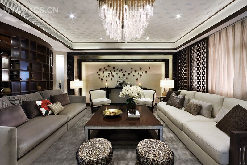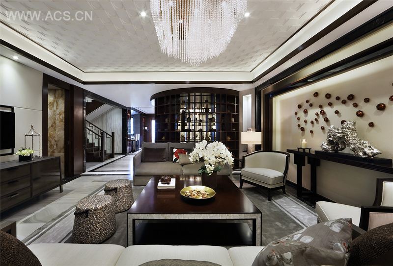 东方风格一直是表达不完的主题。在这个设计案中设计师融入了更多的当代设计元素及抽象图形,表达当代东方的空间意韵。