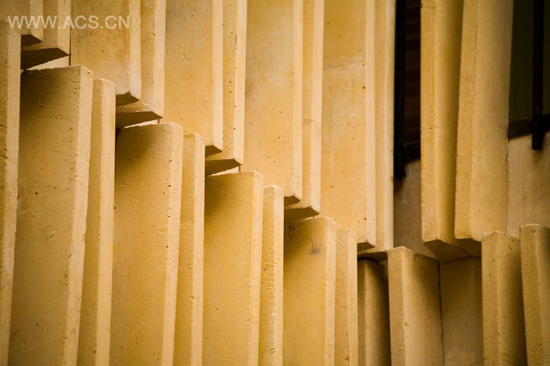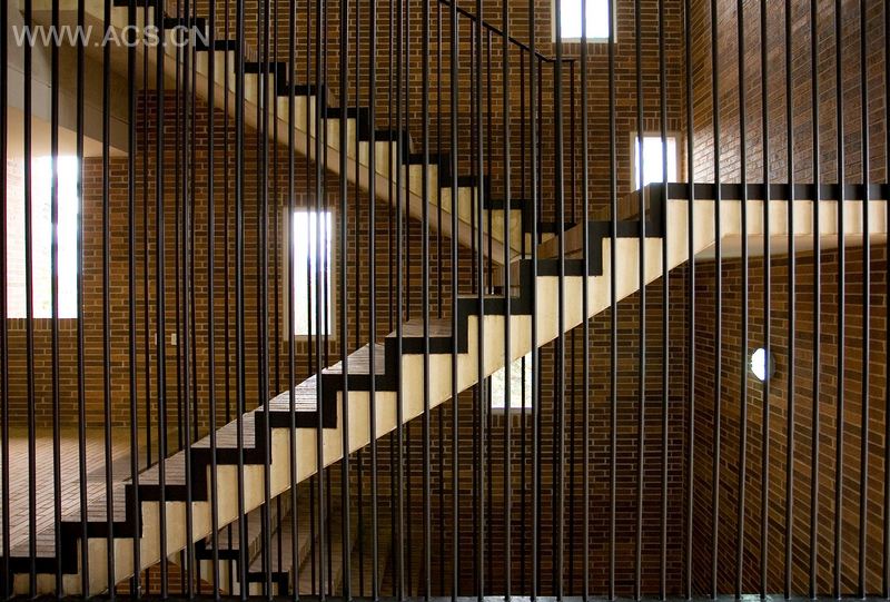 一个大楼梯,或分层的座位,保证了水平高于基准平面(地面层)之间的流体连接,同时提供一个公理空间。用此元素,建筑的规模变化了,并重新说明了中庭空间的使用。 占主导地位的实质性项目,大幅面的砖和修长的预应压力混凝土元素(米色),结合了大的内部中庭空间的外部空间。 更花哨的色调和材料的使用在了充满活力的绿色特殊部门(门司),并是用平滑的福米卡家具塑料贴面完成的。