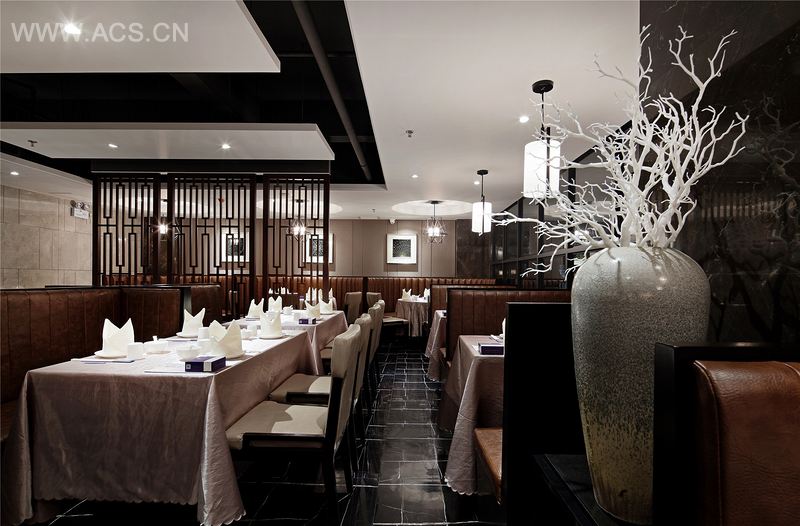 川菜作为中国八大菜系之一,历史悠久,在中国烹饪史上占有重要的地位,它融汇了中国东南西北各地方的特点,善于吸收,敢于创新。兰亭序作为新派川菜餐厅,在空间格调上,以简洁时尚的手法,并加入了一些现代中式格花元素,即符合现代人的审美情趣,又表现出川菜悠久的历史文化。为了营造餐厅安静,舒适,高档的就餐氛围,设计师整体以深色调去表现空间环境,对就餐区辅以点光源设计,灯光打在桌面的菜品上,营造出更大的视觉诱惑力。