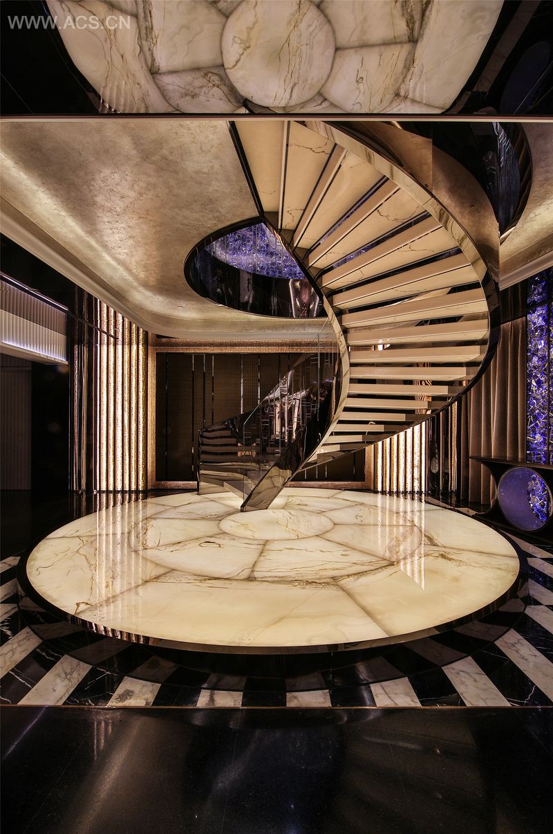 花的语言成为设计师借用的设计元素,把受层高限制的天棚设计如精美花瓣,将消防喷淋和空调风口隐藏于中,搭配上绽放如花朵般的楼梯、花瓣似的屏风、玫瑰花图案的地毯、白色马蹄莲般环抱的沙发……花的元素被延伸至空间每个细枝末节,期待你静下心来细细品鉴花儿的味道,聆听花儿的呢喃。