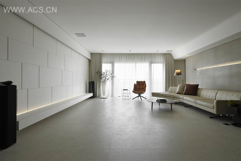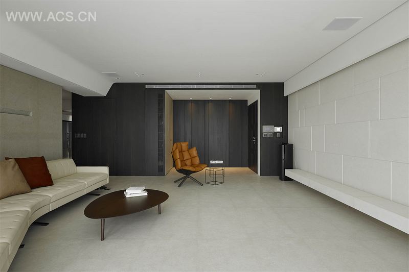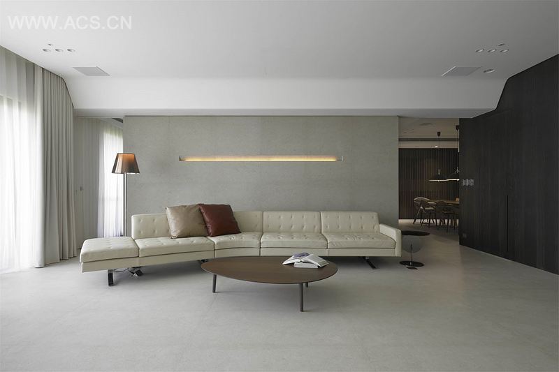 当材质越呈现其单一纯粹,人处于空间的感染性越强。就像人在靠近巨幅画作时,与画作之间产生亲密度,像是被笼罩包围进而产生对话。在有限的室内空间尺度下,我们也试图拉大墙面的延伸性与单一性,并适时保持出口,消弭密闭空间的压迫感。