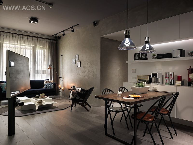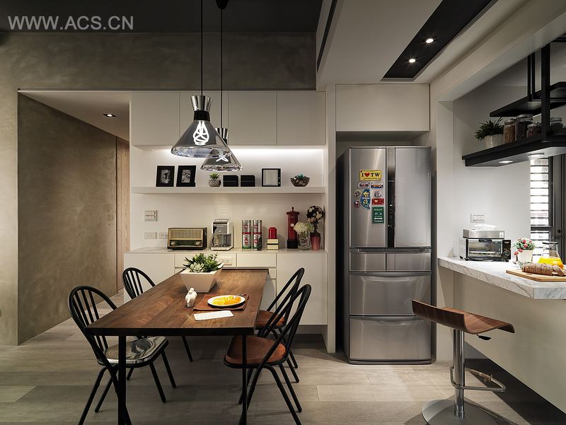 开放的公共空间设计,来自频繁互动的需求。透过吧台、家具的界定,创造厨房、餐厅、客厅的丰富层次。