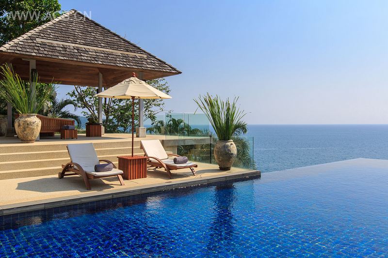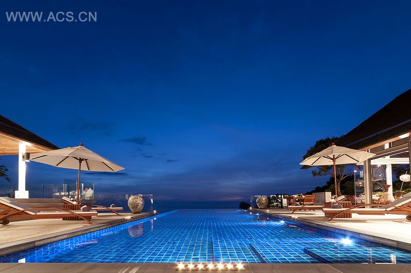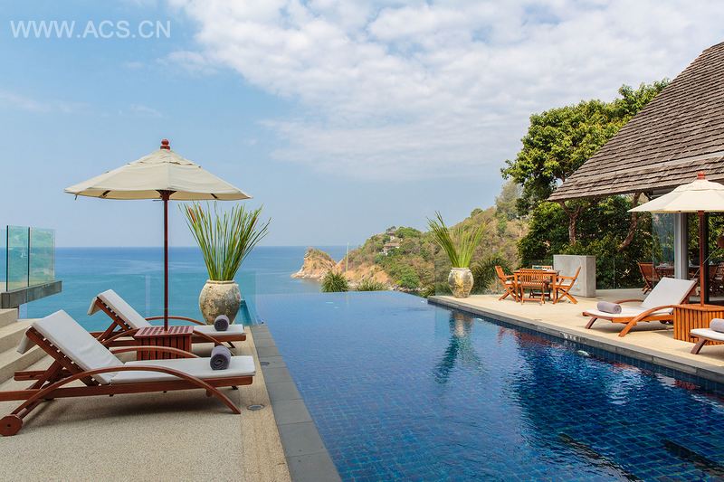 洛姆乔伊别墅拥有醒目的入口,恰如其分地为室内的奇观奠定了基础。推开前门,便是接待处和高于地面的室内阳台,在阳台上可以俯视宽敞的客厅和餐厅。宽敞的房子装有折叠玻璃门,玻璃门外是家具配备阔气的露台和私人泳池,远处安达曼海的壮丽风光尽收眼底。