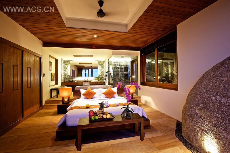 缓缓步入别墅,映入眼帘的是极为宽敞、错层式的客厅区和餐厅,空间都被木材包裹起来,拥有绝佳的热带风光。从室内到室外,大气的空间比例与广阔的海滩、海洋风景使得空间与空间融为一体,不见任何瑕疵。从设有大沙发和家庭娱乐设备的休息室,到装有高清户外电影设施的美丽池边露台,再到足够容纳20人的宽敞餐厅,休闲放松空间十分充裕。开放式的西式厨房内设有专为烹饪高手打造的一系列的LG、Siemens电器和大木餐桌。