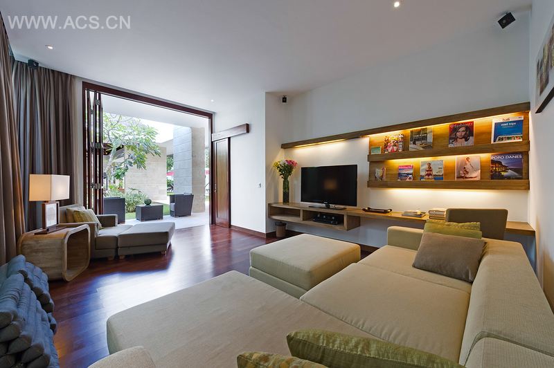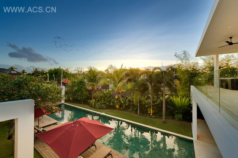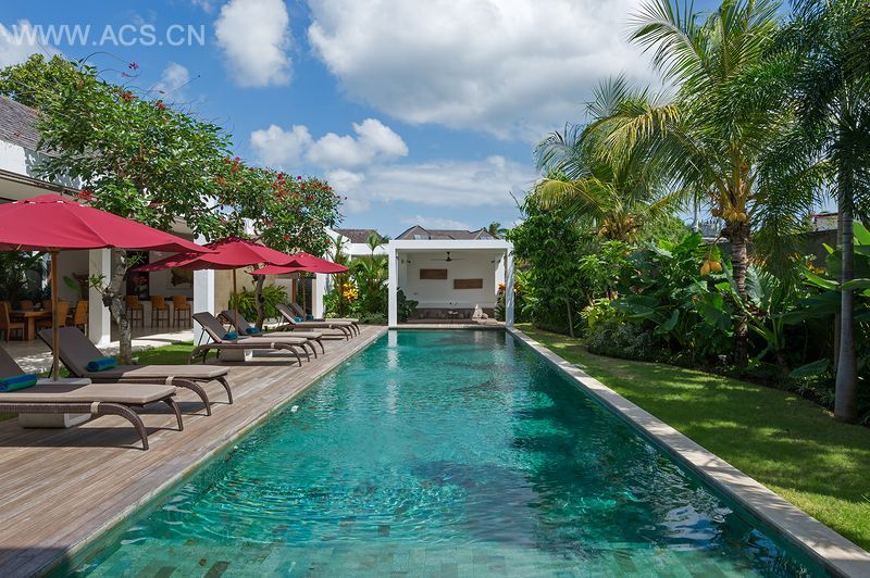 布里奥别墅虽是意大利风格,本质上却真正属于巴厘岛。别墅坐落在茂盛的热带花园中,被棕榈、赤素罄花和幽兰包围,地尽其用,空间广阔,充满异域情调。若是坐在水池露台的椅子上,遮阳伞给人丝丝清凉,颇为享受;而坐在沙发上,一边阅读杂志,一边远眺璀璨的泳池,趣味十足;或是在休闲娱乐空间吹着空调,极为舒服,较之前者也不乏趣味。
