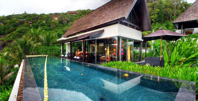 别墅分为四层,每层的房间都能欣赏海景。别墅入口设在顶层,该层还设有接待区和能远眺海景的休息区,往下走入第二层,宽敞的开放式米洛提(Minotti)厨房、餐厅和客厅。室内空间都敞向15米水池边的休息台,露台似乎在安达曼海岸摇曳。再往下走一层便是另外三间卧室空间,都带有私人套间和观海露台。楼梯继续通往一楼,来到超级私人主卧套房(1卧室),内部配有浴缸,两个私人观海露台被茂盛的热带花园包围。