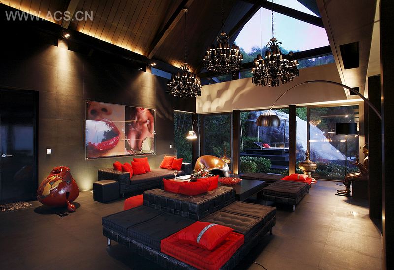 隐逸于极致的美丽世界之中。别墅引用了鲜艳的古董,如14、15世纪的泰国佛陀、古缅甸锣,还有当代艺术家Xiu Ciu Wen、大卫·拉切贝尔(David LaChapelle)和安迪·沃霍尔(Andy Warhol)的作品。