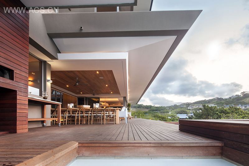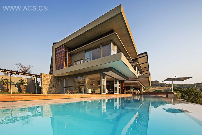 现代的家庭住宅合欢屋坐落于Simbithi生态村的山坡上,占地一公顷。设计简约而精致既是客户的要求,也是房屋的特点。