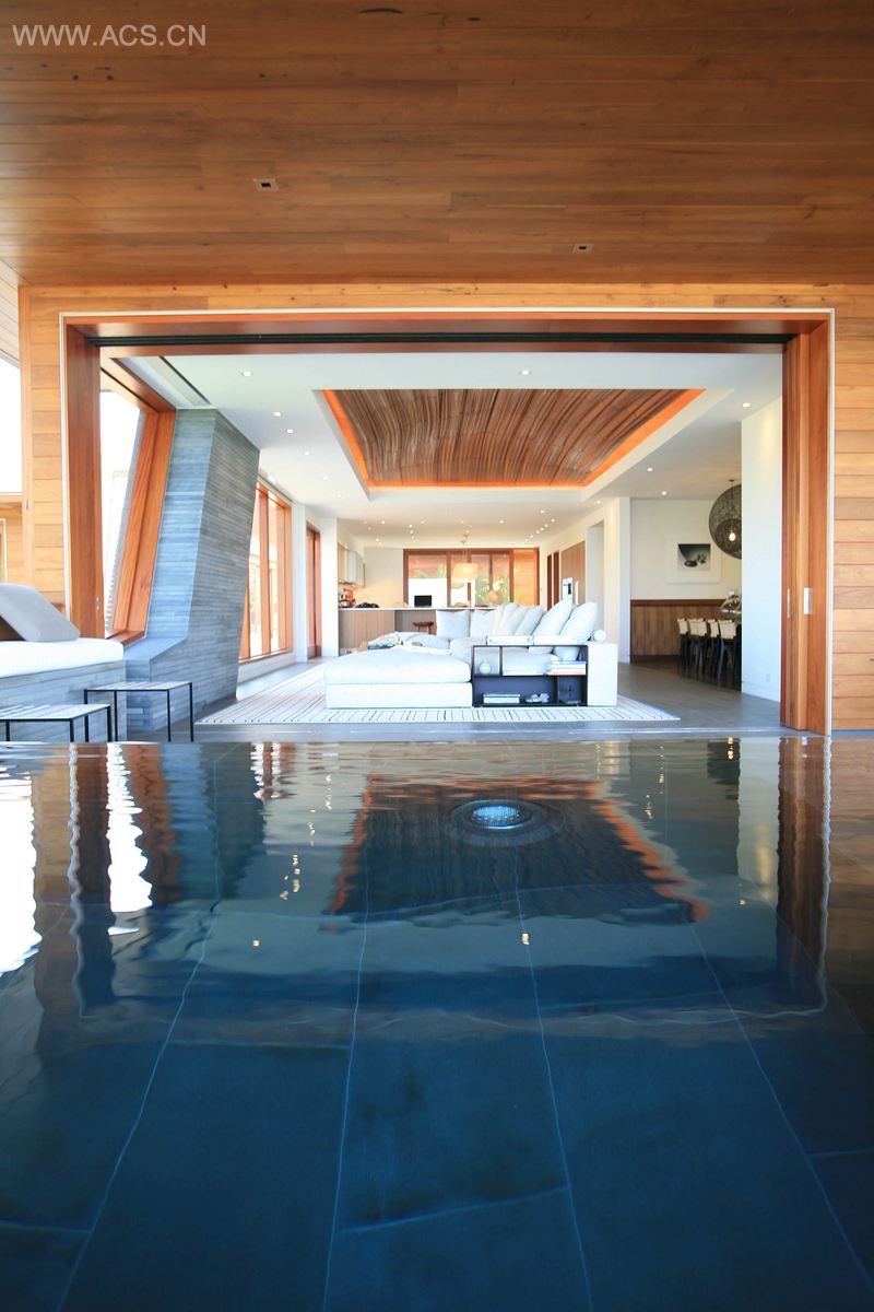 为了维持房屋对周围环境的敏感度,屋顶上装有两排太阳能板,给房屋供应能源。黑色的熔岩石在太阳辐射下散发出热量,给池水加热。别墅通过三个旱井来收集和分配水,补给整栋建筑的蓄水层。再生柚木取自旧畜棚和火车轨道,被重复利用到户外空间中,再配上经过堆叠、加工的火山石,使得别墅颇具夏威夷传统特色。入口处亭子的灵感则来自于当地的篮子编织文化,它可在欢迎仪式上充当“传统礼物”。各式各样的数码雕刻木天花板和屏风渗透到了整栋房屋,延续了传统夏威夷抽象木刻手法,此外,传统元素也与当代的布置风格相融合。
