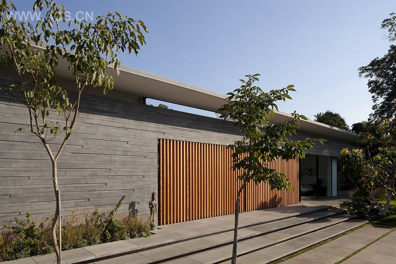 带状的窗户在建筑的墙壁上延伸,突出了悬浮的屋顶,淡化了因房屋规模产生的堆砌感。