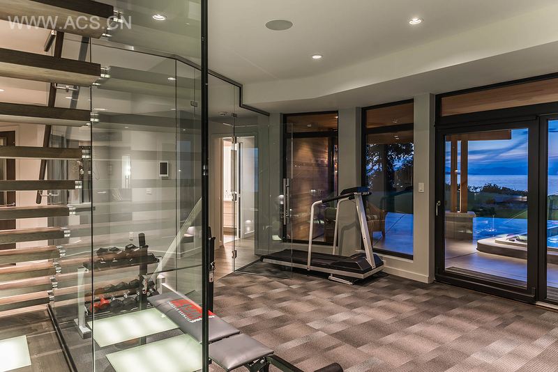 开放式布局并不意味着一个单一的大空间,而是一系列相连通的开敞空间,就如厨房和客厅所在的两栋楼亭一样,衔接在一起;有三扇18英尺宽的露台滑动玻璃门可直接通往客厅,进而再通往休息露台,便能观赏到海洋和傍晚的日落风光。户外厨房设施齐全,包括柴火壁炉、聚会用燃气壁炉、比萨烤炉、混凝土桌台和户外烧烤炉。