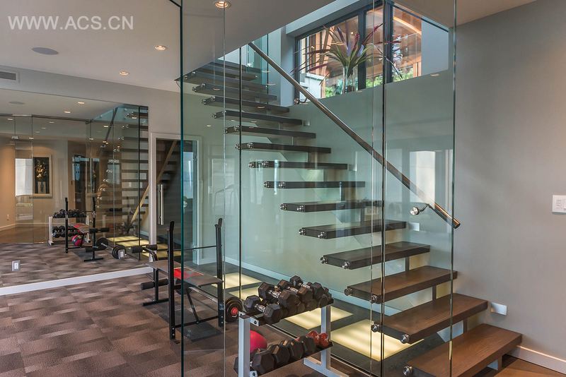 别墅突出的特色之一就是由横梁和柱子构成的走廊。它从三车位的车库到寄存室入口,再到独立的客房入口,三者之间的过渡因为这条过道而变得自然完美。