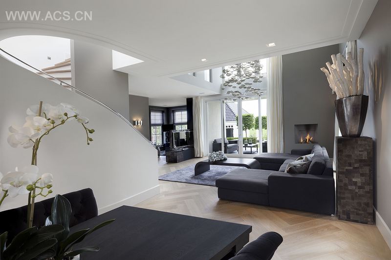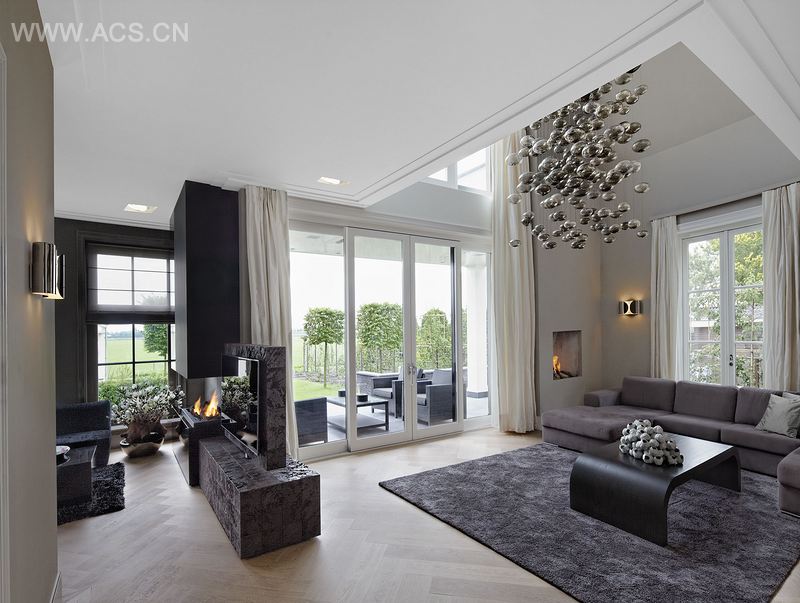 该别墅坐落在荷兰北部,占地450平方米。客户想举办温馨的家庭派对,此别墅显然帮它实现了愿望。空间装饰着各种醒目的装饰品。玛瑞蒂(Maretti)梦幻吊灯是由科伦尼克(Kolenik)设计而成。地下室中设有健身房和吧间。主卧室能观赏到大吊灯,轻轻按下按钮,百叶窗便能挡住视线,新型玻璃的使用保证了空间的隐私。