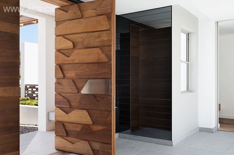 室内的家具和饰品都是由AA Interiors的设计师Mark Rielly和Sarika Jacobs设计的。现代家具契合了这栋房屋的现代格调。各种物品都是由木材、皮革和粗亚麻布制成,不仅触摸起来十分舒服,而且给空间增添了一种低调的奢华感。印花布的艳丽色彩都是房主喜欢的色彩。除此之外,OKHA Interiors设计的家具也被应用到了空间的各个角落。