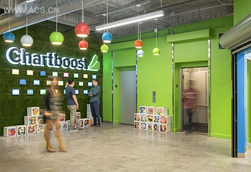 对于新办公室,Chartboost 最感兴趣的是让空间体现公司的核心业务——电子 游戏。Chartboost 是世界最大的专攻游戏的科技平台。该公司希望新旧金山办公室 能体现游戏世界的力量,具有有趣的互动氛围,能让任何一位进入到空间的人感到兴 奋。Blitz 设计公司接受了这一挑战,设计了这个把游戏世界变为现实世界的现代办 公室。