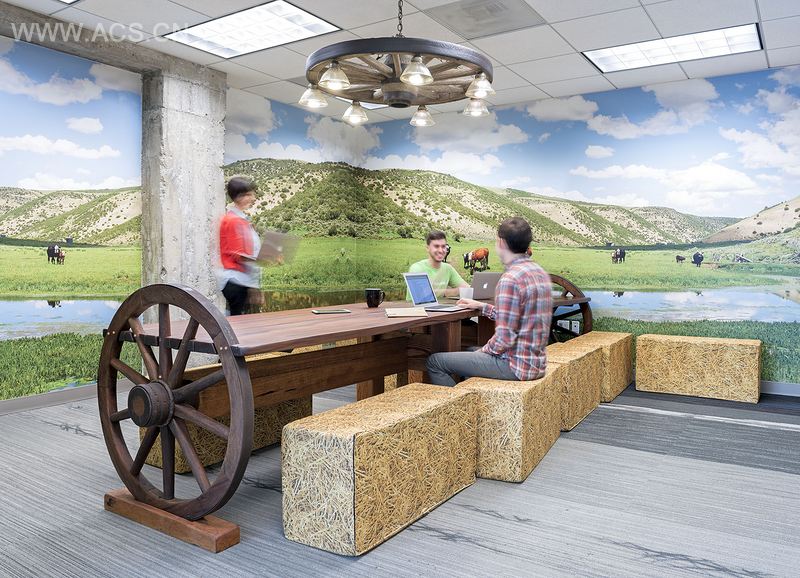 Chartboost 的工作方式十分灵活,团队队员更换和重组十分频繁,每两周一次。 Blitz 设计的办公室布局允许职员根据需求携带着办公桌,在许多的独立小间中与组 员一起工作。下午三点钟以后,大部门职员会在开放式主题空间中休息,例如侏罗纪 公园和马里奥公园。马里奥公园还充当了走廊和咖啡区,并摆放了为展示准备的露天 座位和用餐的长凳和桌子。