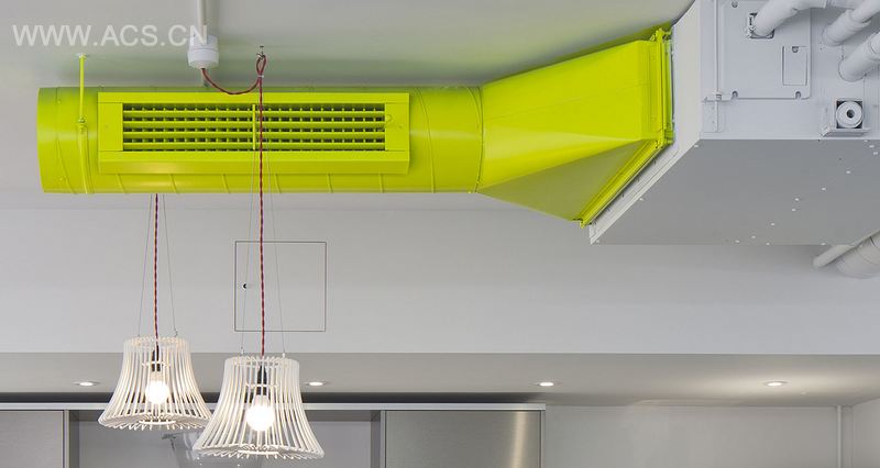 大型开放式办公室的点睛之笔将转变空间,让空间更有格调。霓虹黄漆外观、 凹式天花板、暴露的管道、荧光照明灯具以及玻璃会议室,一应俱全。玻璃会议室都 用巨大的天使翅膀装饰着,符合房屋所处位置的特点。