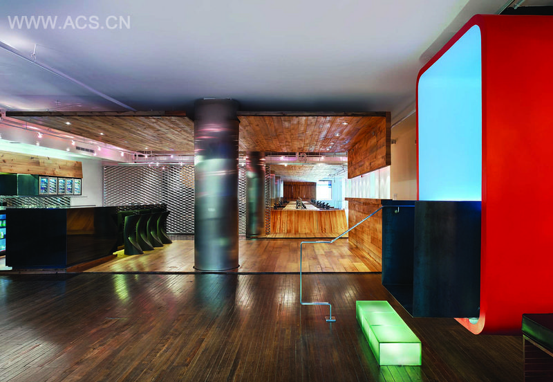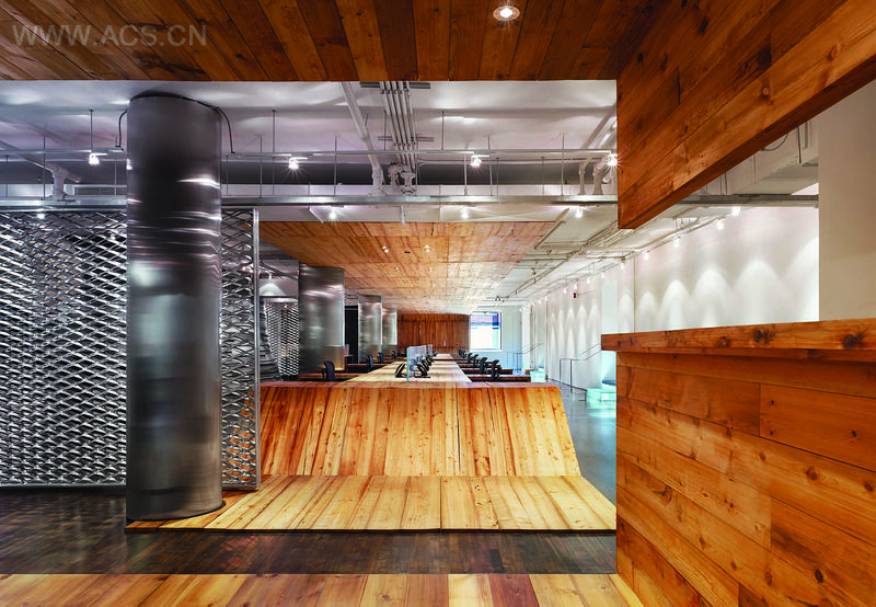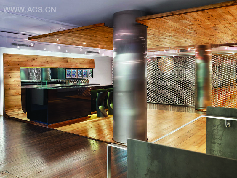 红牛办公空间后来被扩大了约 465 m2,主要集中在 4 个方面:酒吧(休息)空间、 会议空间、线形开放式办公空间以及给人以舒适感的装饰。客户对空间的要求分为 3 层:为通常被分配到平淡无奇的工作空间的行政人员和财务人员创造一个鼓舞人心的 空间;充分利用回收材料;创造一个在理念和形式上与原空间保持一致,却又重新阐 释了空间的设计。