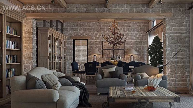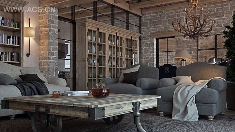 在延续了工业风的粗旷,利用材质与装饰性的线板造型,