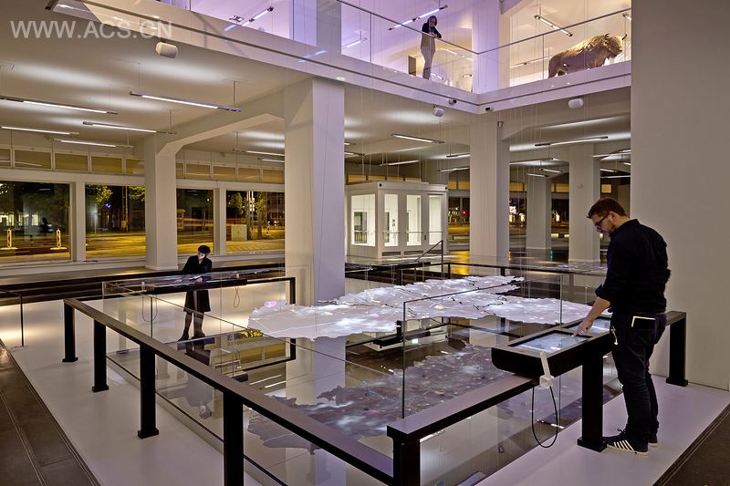 开姆尼茨州立考古博物馆设在原绍肯百 货商店处。著名的门德尔松大楼经过翻修调 整,实现了博物馆的功能。三层楼高的永久 性陈列空间从早期历史跨越到撒克逊地区的 历史。因此,考古学和历史学说明式地结合 到一起,游客体验的重点也随各种引人入胜 的亮点而变化。萨克森的时间动态模型开启 了展览之旅,纵向连接着三层展示楼,也代 表着萨克森的立体景观。撒克逊交互式模型 的部分移动穿过不同的楼层,给三层楼中各 单独的主题一个视觉环境。