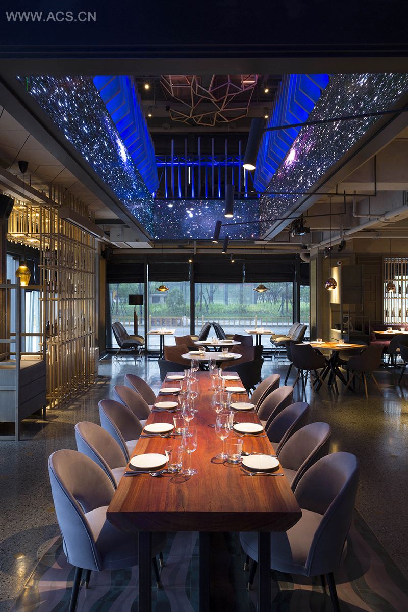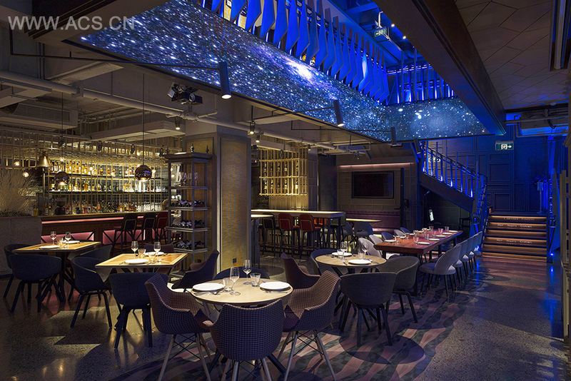 基于对消费群体和空间类型的深入分析,设计师将西餐与酒吧融合在两层的空间内,由此打造了一间富有包容性的餐吧。
