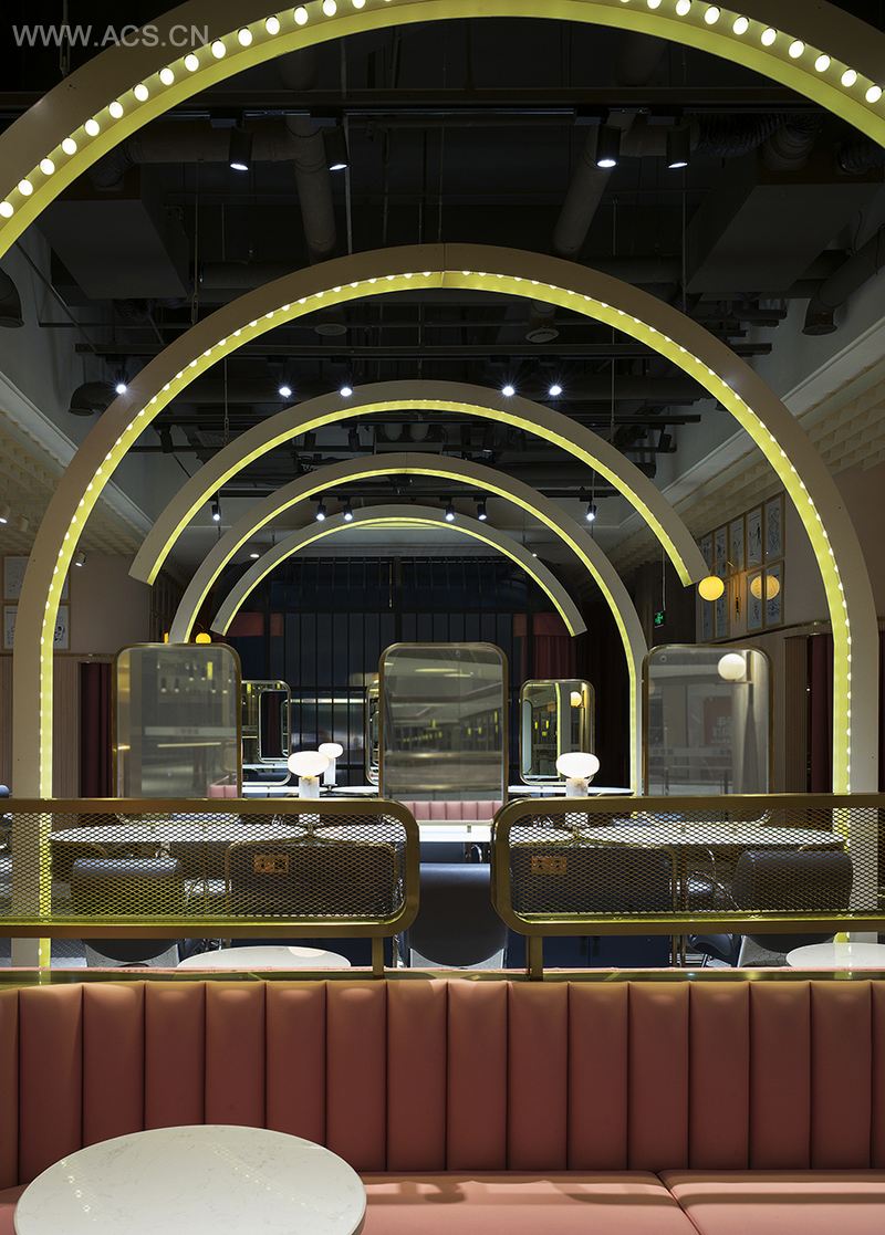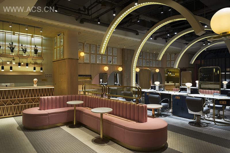 MAY&J位于西溪银泰城,是一家以女性和儿童为目标用户的主题型美发工作室。其设计风格抛弃了传统理念中的欧美风和炫酷风,而是将少女系的粉红色和天蓝色搭配以奢华的金黄色,通过直观化的空间享受,为顾客打造出了一个舒适、清新又自由的新型美发体验店。