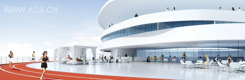 在大厅中,一个波浪形的玻璃门帘围起了一个位于水边的餐厅,这个餐厅冬天开放夏天关闭。在顶楼,酒店的会议设施中镶嵌一个可以俯视Zayed海湾的商务式花园。贵宾套房、休闲区、国际商业中心、商店、健身游泳池、跑道、体育馆、浴场和健康咖啡馆只是酒店中的小部分亮点。酒店被设计为传递世界级服务的标志和高功能器械,有着标志Zayed海湾区特征和突出迪拜的作用。作为一个小城市,它将从内到外传达出一种出色的、标志性的以及当代的环境感觉。它不仅仅是一个供于人们休息的地方。