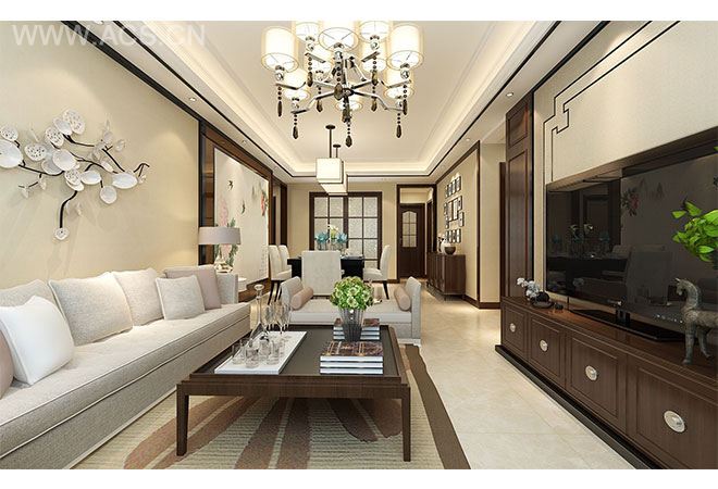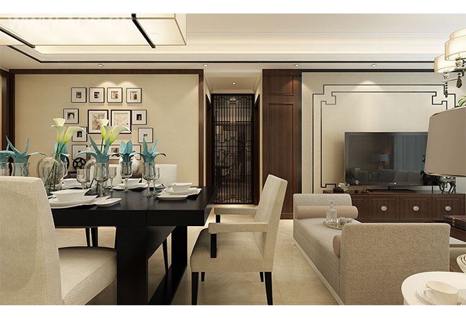 本套案例是将现代元素和传统元素进行了有机的结合,以现代人的审美需求营造传统韵味。大部分采用对称式的布局,用以营造清幽雅致的生活氛围,在装饰细节上崇尚自然情趣,在家具选配上,采用布艺与木质的结合,强调了舒适性与稳重性,在色彩上采用黑,白,灰色为基调,局部用红,黄,绿等做点缀,用来表现东方文化的内敛气质