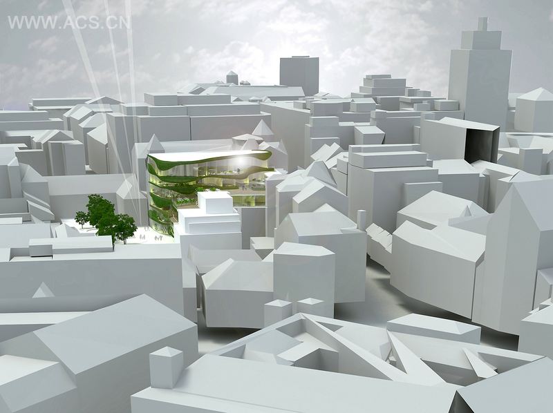 这个项目由精品店,咖啡和住宅组成。街道和公园把公共通道连接起来,贯穿了整个建筑,因为街道和公园在不同的层次,这栋建筑有两层和人行道相通。低的四层商店和商场连接,高的三层是公寓居住,另外是一部分保留现有的历史中庭。