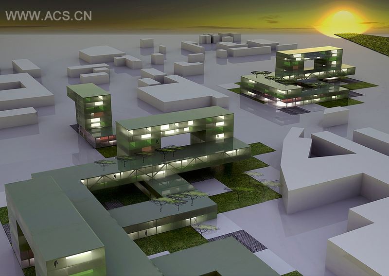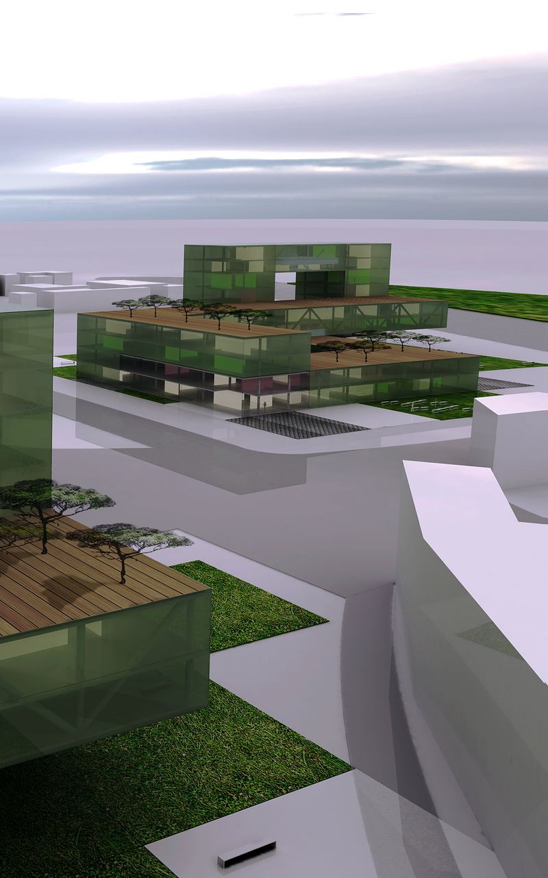在拱门的空位置之间是垂直的废墟广场由主要单元的管理使用和商业领域构成。通过建筑提供了宽阔视野,并且造就了这些建筑的轻快、透明,有着自己的独特的特点。泰晤士河断下的桥,拱门的形状实在让人难忘,这也是综合设施的一个显著的特点。梯田和绿色区域由不同高度的建筑组成。商业项目的绿色屋顶打造了外部空间的办公室,游泳池和健身房。在拱门下的办公室的屋顶大部分也是绿色的。车库的交通使用权来自于dell Elettricita建筑后面的区域,这里也有外部停车场。建筑周围的剩下的空间只供行人使用,它在紧急状态下和交货状态下使用。
