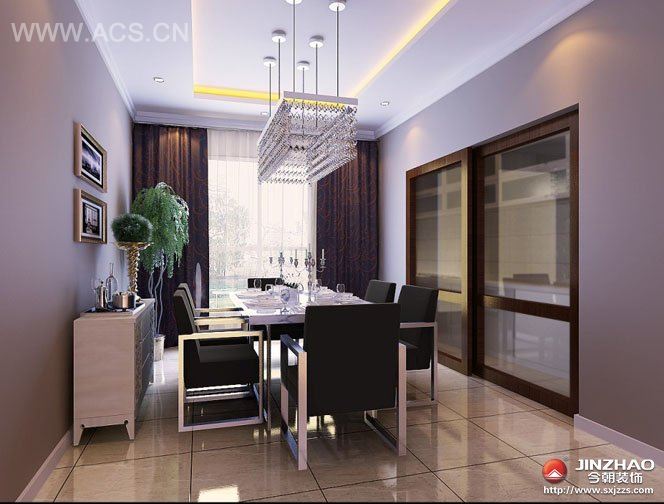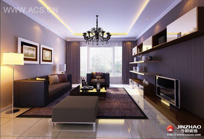 客厅、餐厅、书房为一个整体区域,客厅电视柜和书房之间采用恰能嵌入一个宽屏电视的电视墙隔开,同时,跟书房不完全隔断,扩充了视觉空间,电视墙上的饰品很好的补充了空间,显得层次感十足。