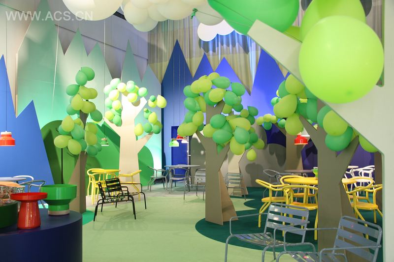 商品交易会的展台采用的都是临时建筑结构,它们可以快速地搭建起来,使用完后也能立即拆卸。这一次,我们想尝试的远不止是建造一个装置,2010年的设计吧旨在创造出一个特别的临时性空间,比起优美的建筑结构,这个空间融入了更多关于舞台及图像设计的元素。
