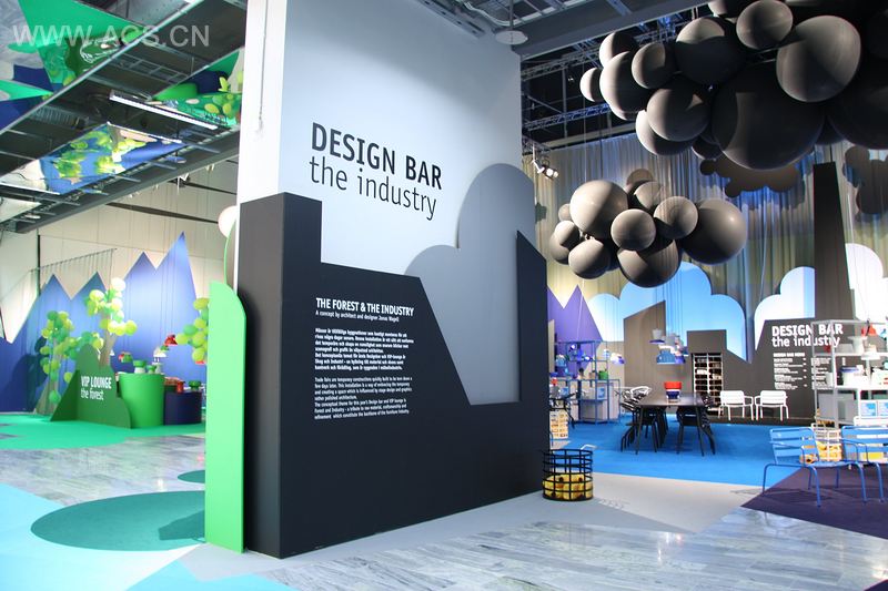 设计吧里还有VIP休息室,它与整体空间有着相同的设计理念,但却有着不一样的外形和感觉。吧台区这儿可以向参观者提供低热量食品,你可以坐在这里休息并享用一杯咖啡,而清幽的VIP区则为参观者们提供了一处便于聚会和聊天的安静场所。设计吧和VIP休息室的主题概念为“森林与工业” —— 这个主题是向原材料、工艺以及精工制作致敬,它们共同构成了家具行业的脊梁。