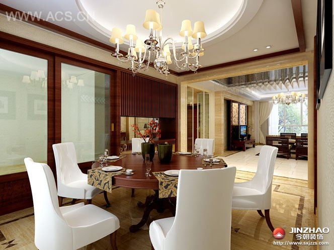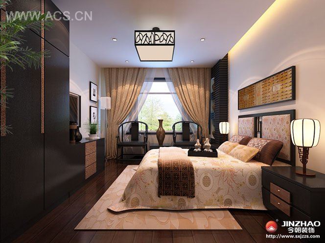 案例说明:中国传统的室内设计融合了庄重与优雅双重气质。中式风格更多的利用了后现代手法,把传统的结构形式通过重新设计组合以另一种民族特色的标志符号出现。例如,厅里摆一套明清式的红木家具,墙上挂一幅中国山水画等。