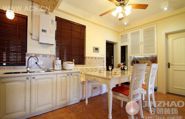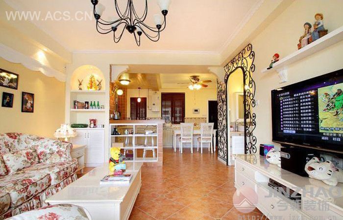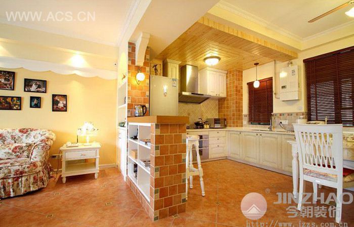 设计亮点:整个空间色彩鲜明,田园花纹和简欧线条有着非常好的搭配,复古的地砖,奶黄色的墙面搭配着不繁琐的铁艺装饰墙,无处不体现着田园的舒适淡雅和捎带简欧透出来的品位,满足了业主对于自然的向往。