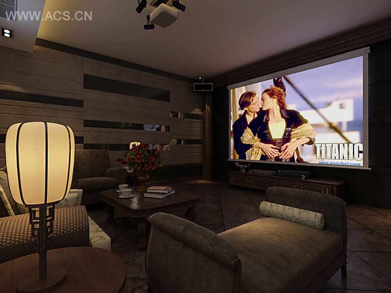 影音室:影视墙包木框、贴砖、消音墙装饰