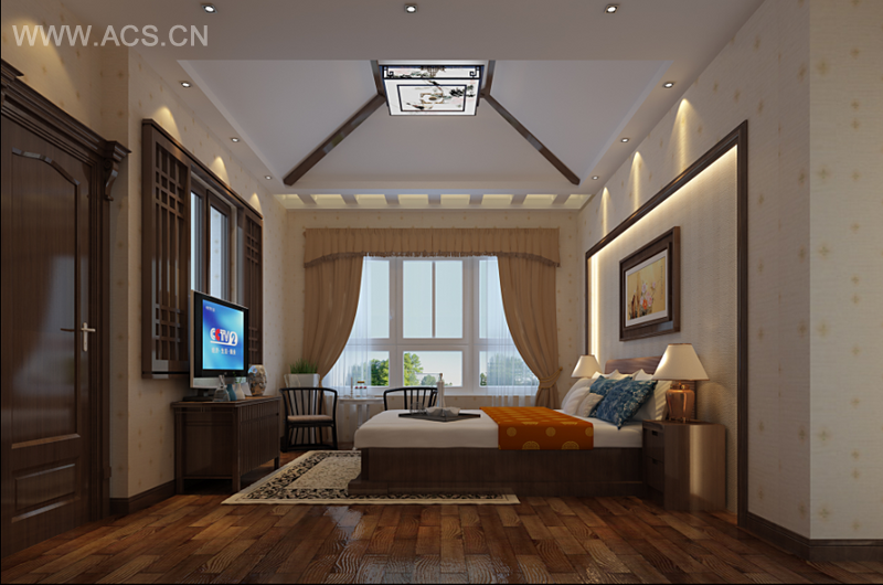 客房:衣柜、天花、电视柜、窗帘盒