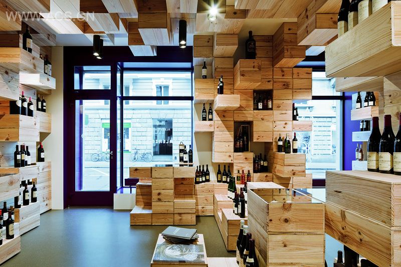 苏黎世的这个“葡萄酒展廊”不仅销售红酒,而且还提供红酒品尝及研讨会的服务。目标是要吸引一般的顾客和行人。OOS设计的空间布局和展现出来的效果反映了该店的价值观、传统,以及让这些酒瓶传递出一种气氛。