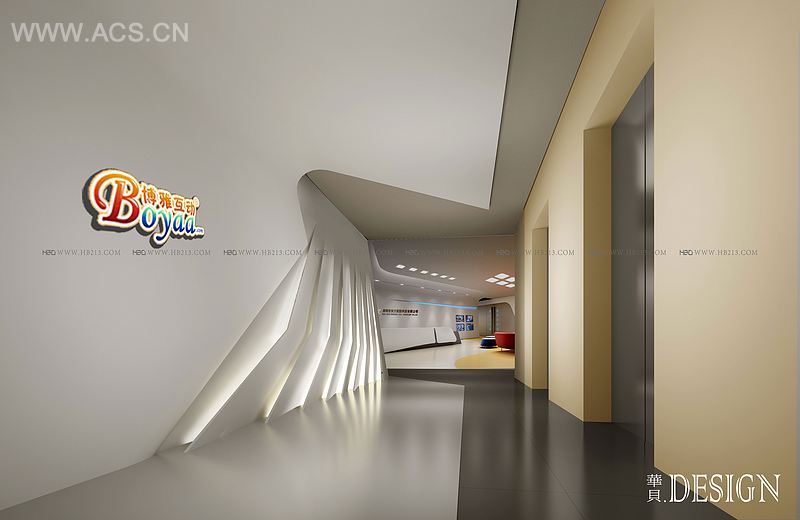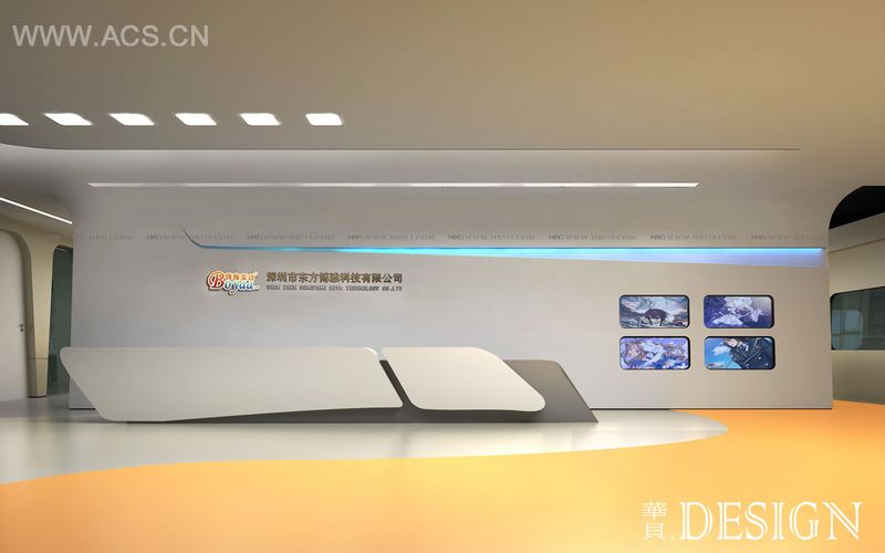 不同的区域采用了不同的光源,前台部分,天花的曲线温婉动人,如同一弯柳叶,前台的背景墙采用了素白的格调,如此可以更加凸显出企业logo的形象。该区域的光线柔和有度,体验自然。同时巧妙将直线和曲线结合,令空间张弛有度,层次分明。