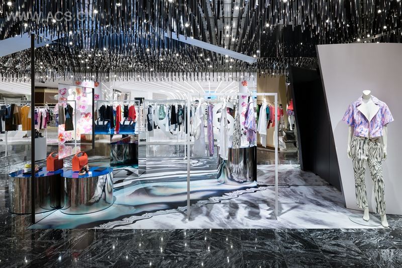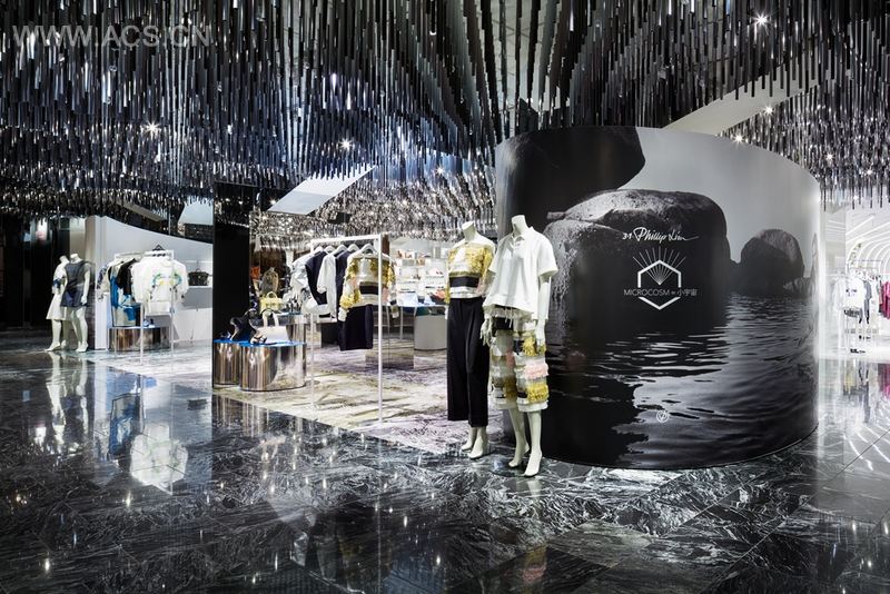 首先,我们把空间划分为两个区域,来强调A与B的关系。然后用镜子把两个区域相连。当你进入店里,真实的画面和倒映的画面相互交融,创造出一种新的关系,即“A与B共存”。