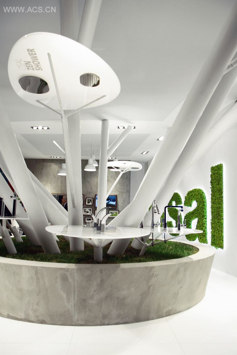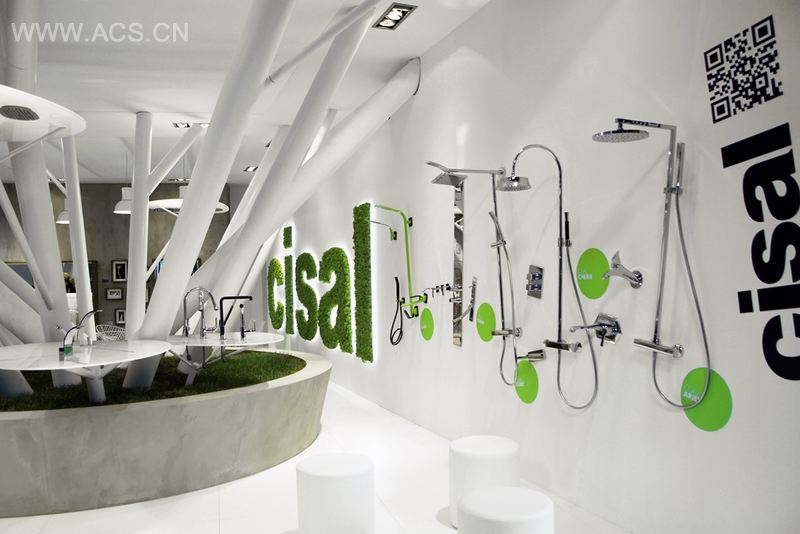 意大利西萨尔的展览旨在建立空域,建立在独立的重要元素之上。 他们尊重通过展位本身的平面图和房屋的支撑结构。 自然形态,材料和美学的灵感不仅反映在苔藓覆盖的公司标志中,而且反映在包含其他元素的骨架本身中,从而形成了用于展示Cisal公司水龙头的风格化天然产品。 这些核心元素得到了收集框架的补充,这是第一次在Cersaie 2013期间推出的。