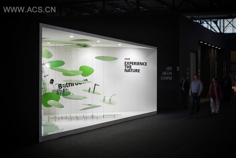 暴露的概念是玩弄浮在空间和墙壁周围的植物图案的想法和形式。 用于展示水龙头的树叶唤起了Cisal公司的轻盈,纯洁和积极态度,以及其对自然和环境的投资组合。